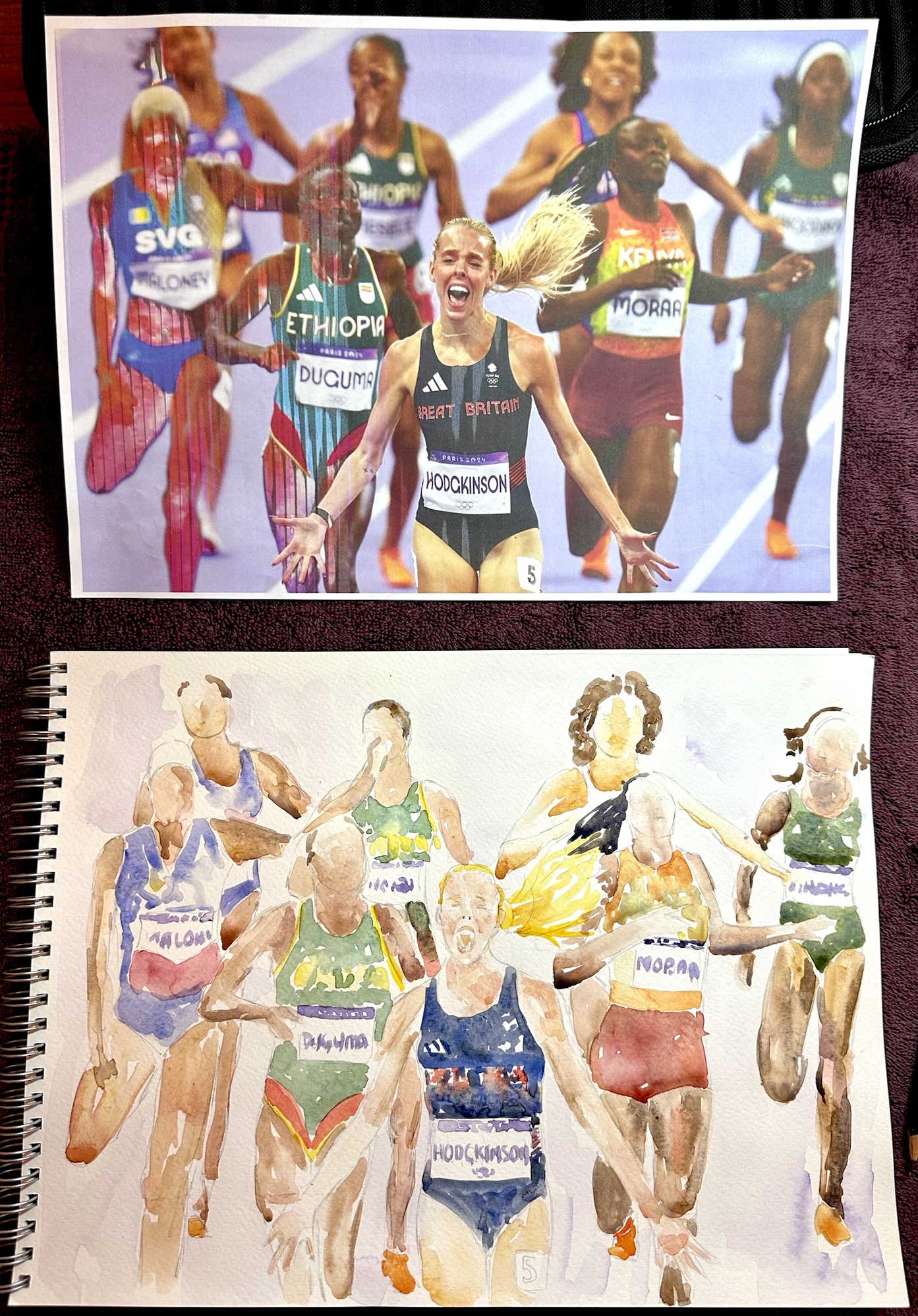 Everyone chose a different way to tackle the subject of the Olympics and Paralympics in Paris as there has been a plethora of images available online or in newspapers. Some members chose to ‘do their own thing’ which we always love to see too. Reference pictures have been included in the photos so you can see the images that the artists worked from.